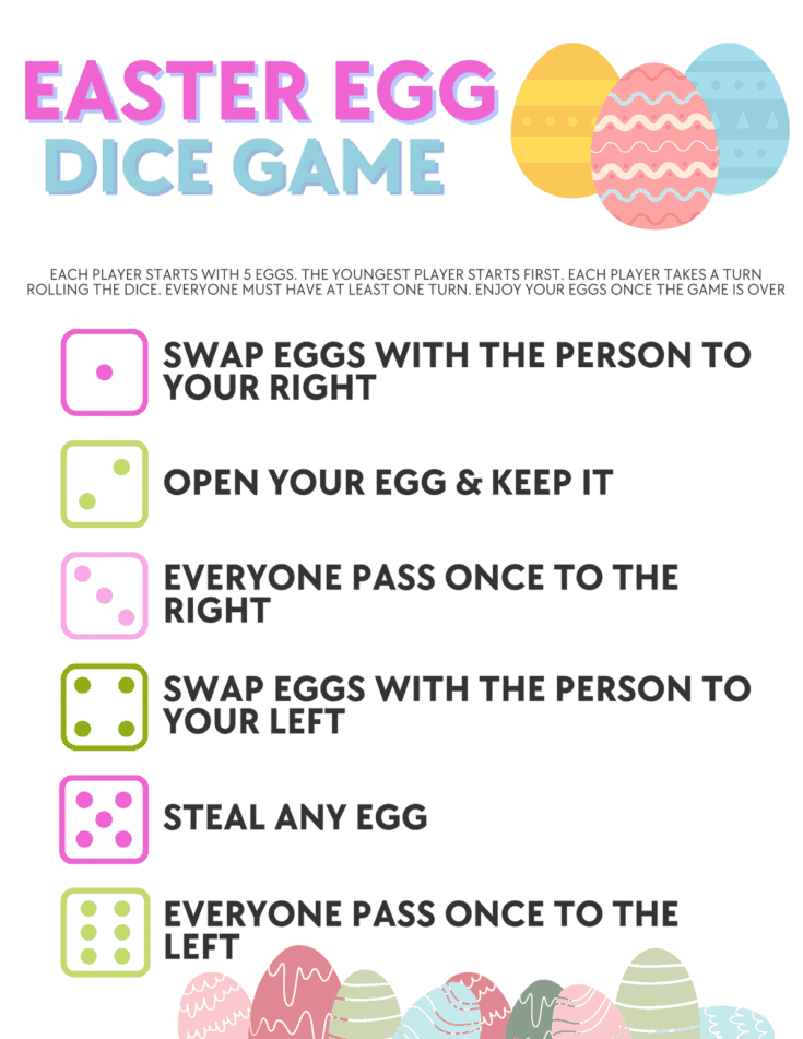 Print This Free Printable Candy Dice Game for Easter