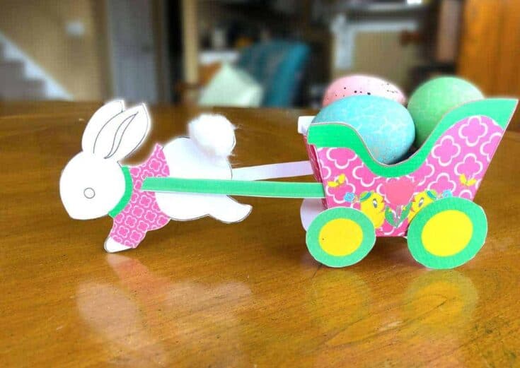 Get this delightful Printable Easter Bunny Craft Template—a charming paper bunny pulling a little basket wagon, perfect for kids to color and transform into a festive decoration!